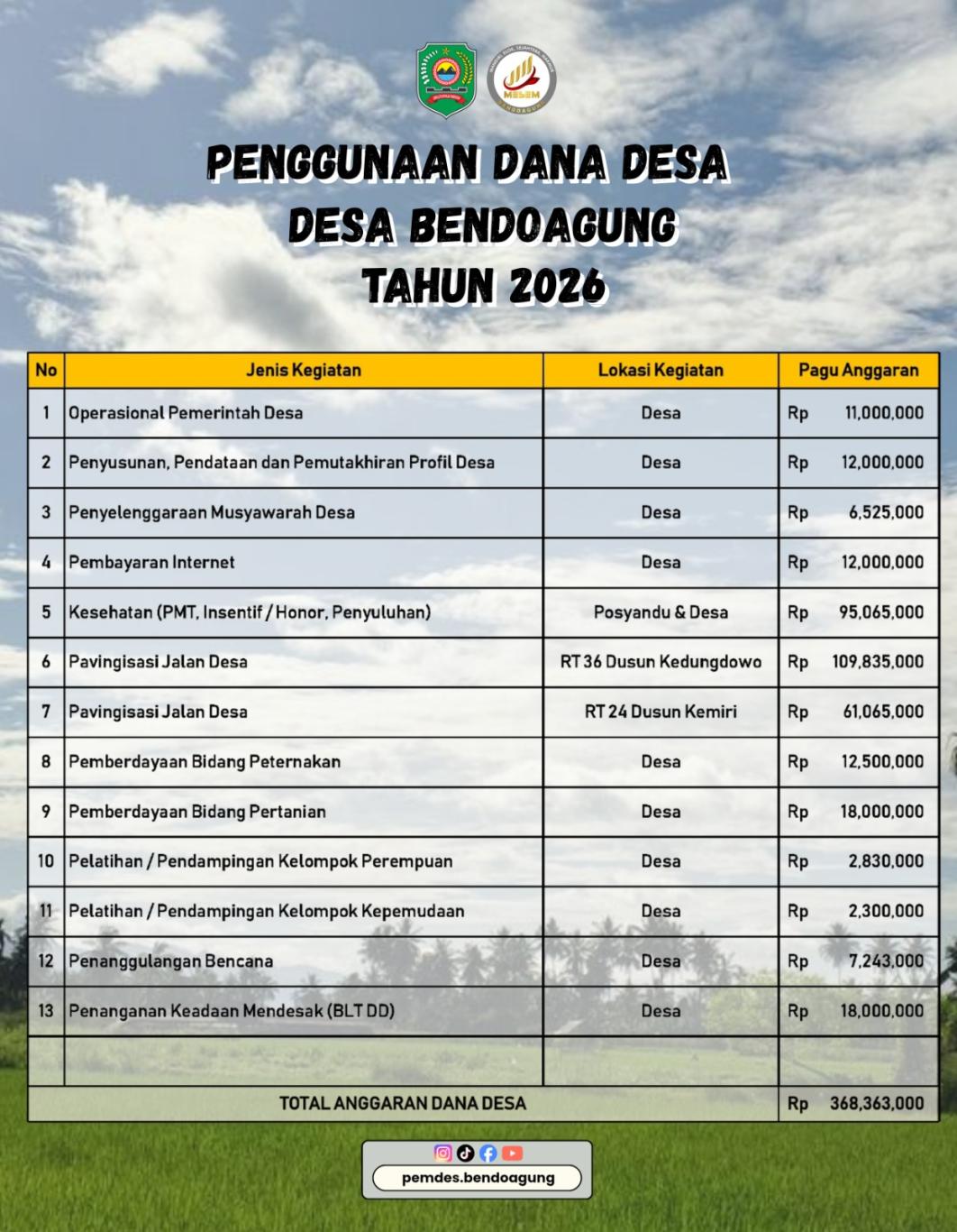 - Penggunaan Dana Desa Bendoagung Tahun 2026