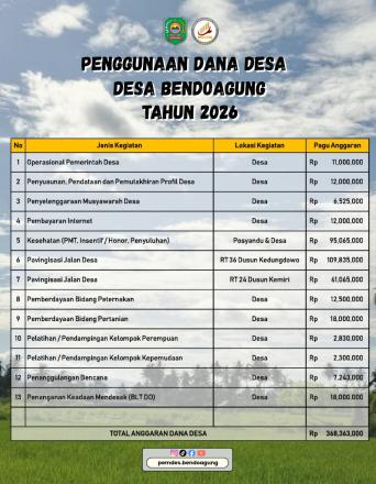 Penggunaan Dana Desa Bendoagung Tahun 2026